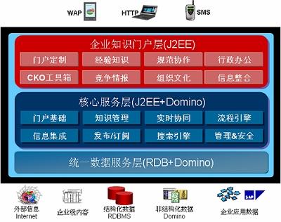 企业门户总体解决方案也分解为三部分:企业外部门户解决方案,企业内部门户解决方案以及企业分销管理解决方案。企业可以根据自身的需